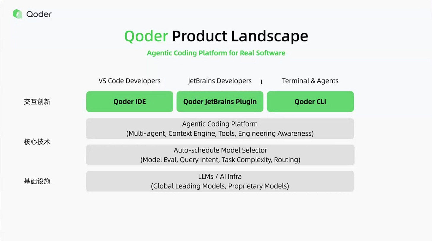 Qoder’s architecture distinguishes itself from typical IDE-centric tools. Rather than building separate products for different interfaces, Qoder operates as a unified platform. “At the bottom, you have the brain, the intelligence, the models, the agents,” Yu explained. “And at the top, you have the interface.” When the core intelligence improves, every interface — VS Code, terminal, JetBrains, Vim — benefits simultaneously.