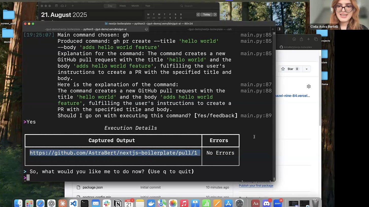 With that simple feedback, gut generated the correct command on its next attempt and successfully opened the pull request. This brief, interactive moment was the perfect microcosm of her entire argument: a partnership where the AI provides speed and automation, and the human provides oversight and critical judgment.