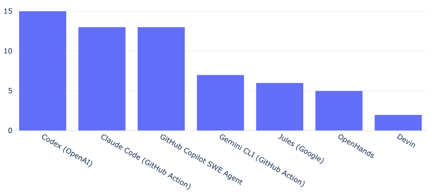 Notes: adoption is still quite low, and OpenAI’s Codex has a narrow lead.