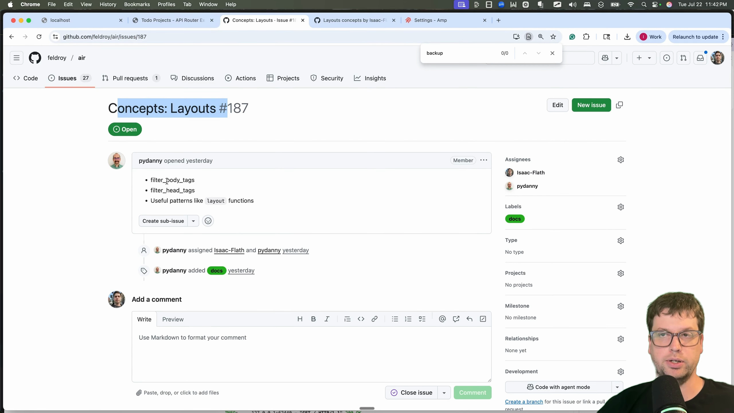 I decided to try AMP, a new AI agent tool. I gave it a real-world task: creating the "Layouts Concepts" documentation for a new open-source web framework called Air. This involved both coding (because I needed to understand it myself by building some examples) and then actually writing the documentation on it. It was something that I actually needed to get done, making it a nice realistic task to test whether it could be useful to me. The PR was accepted and merged.