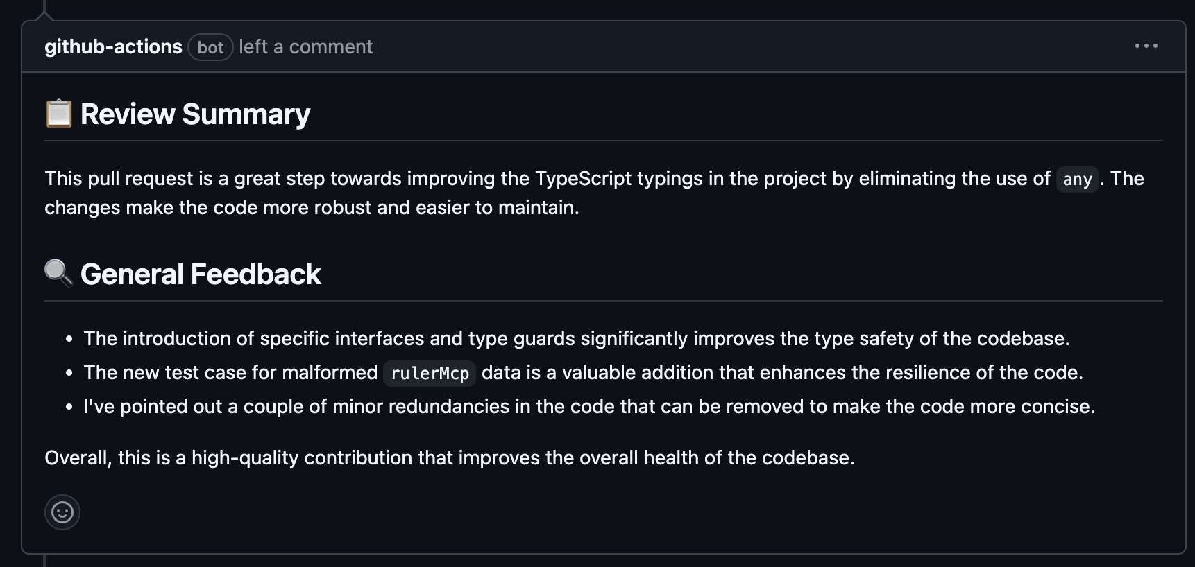 on an issue. It replied that it had received the request. The experience felt less refined than Claude's; comments came from the generic github-actions