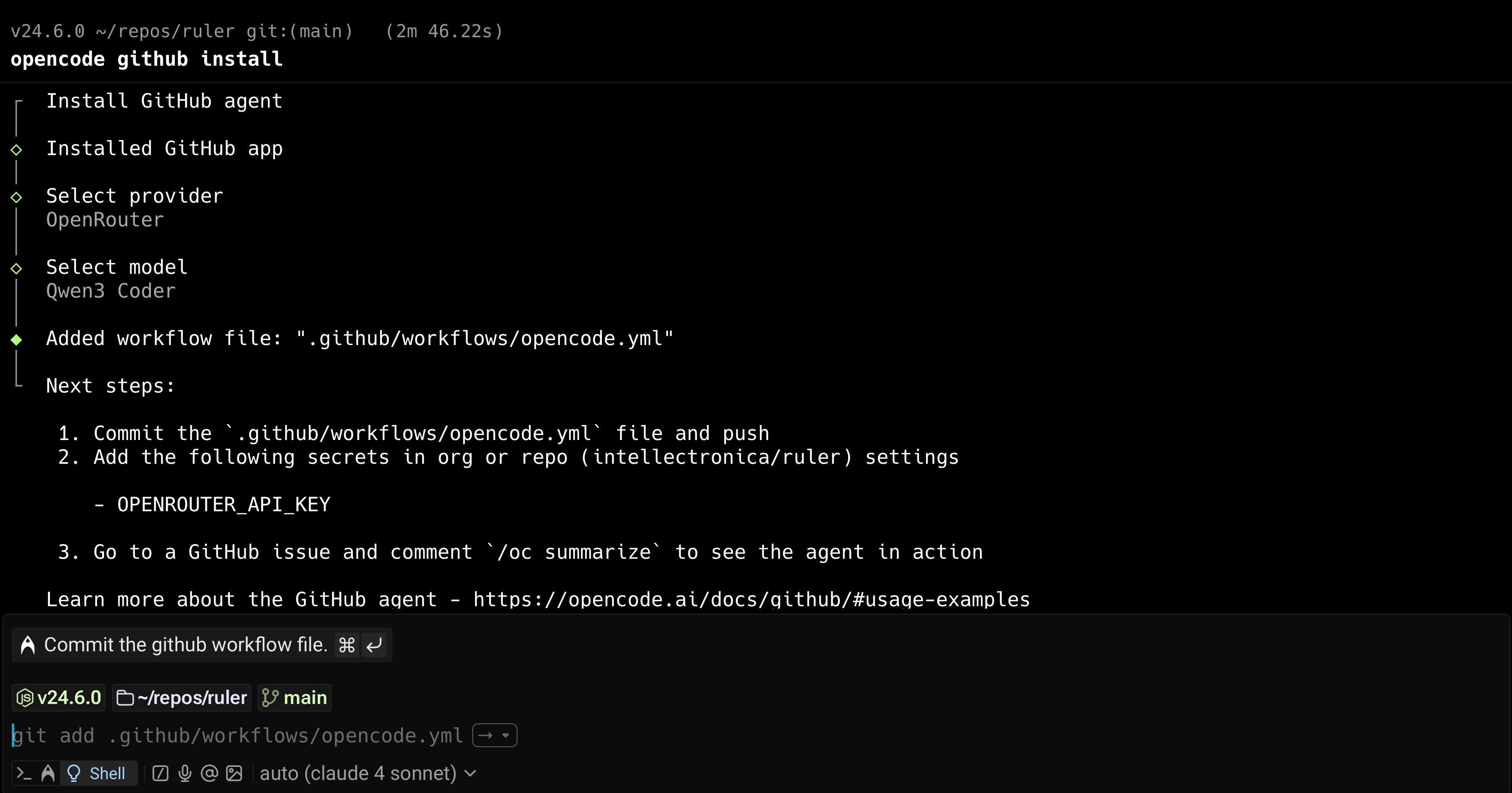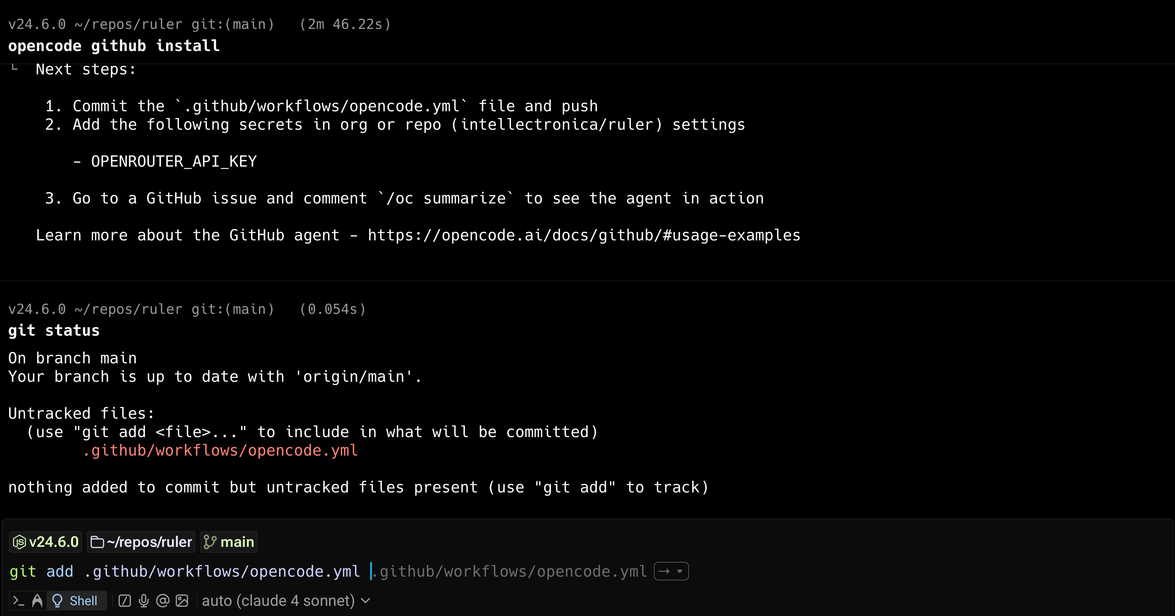 To test its flexibility, I re-ran the opencode github install