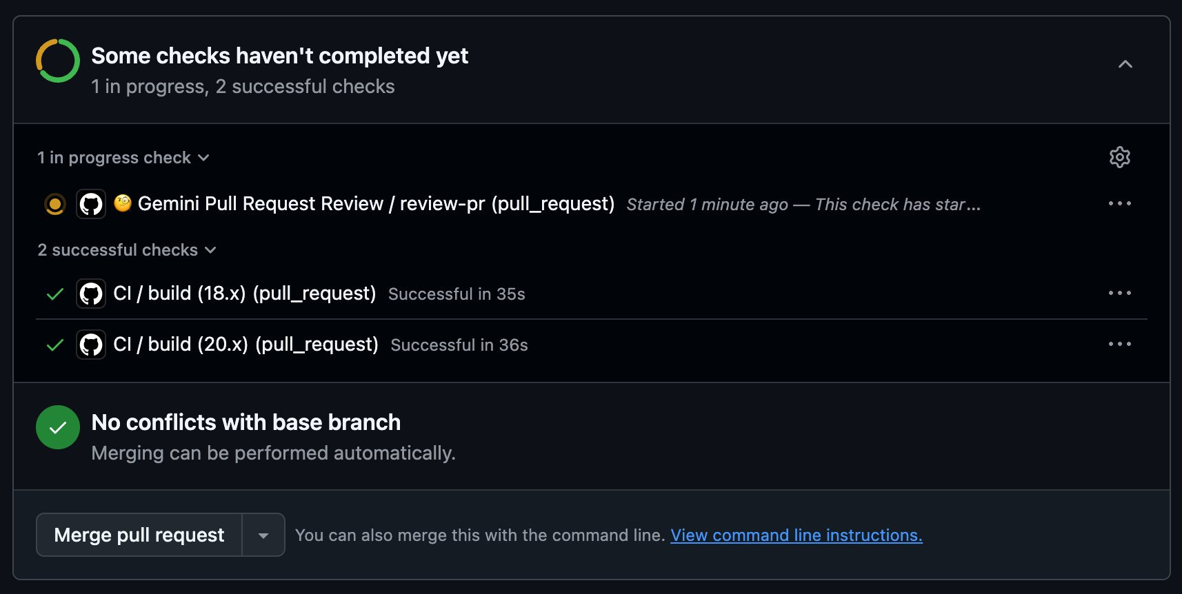 Like Claude, Gemini posted a to-do list in a comment and updated it as it worked. However, it did not provide a direct link to the job run. When I located the run manually, I found that it produced no log output, making it impossible to observe its internal process. While not critical for an asynchronous task, this lack of visibility was a drawback.