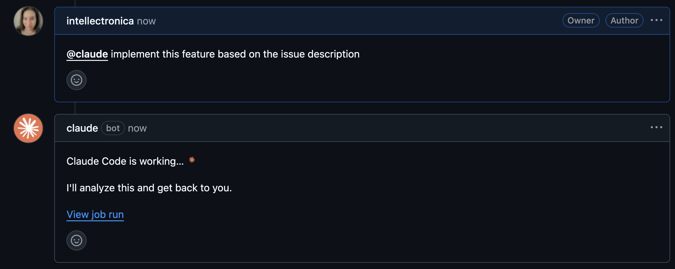 To trigger the agent, I commented @claude