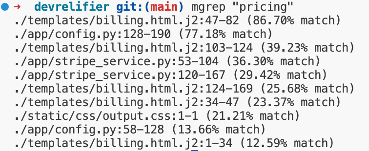 It didn’t just pull in files or line numbers with the string “pricing” it grabbed chunks that were semantically related to pricing.