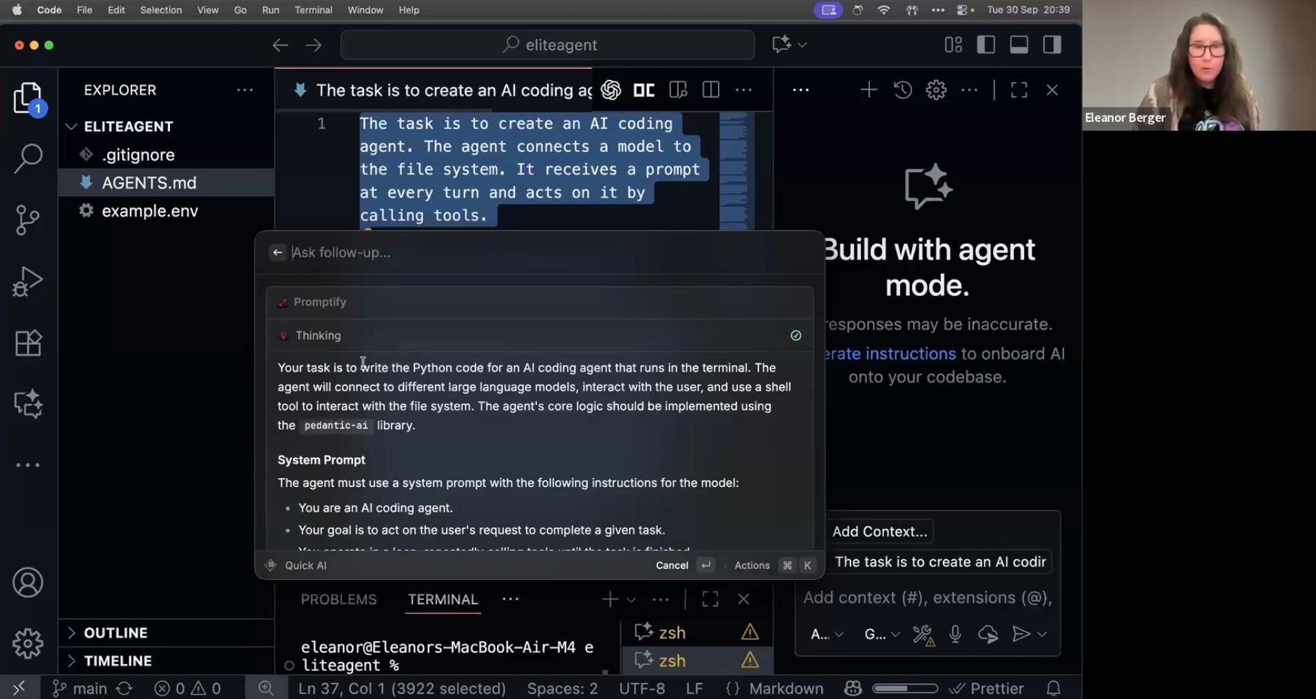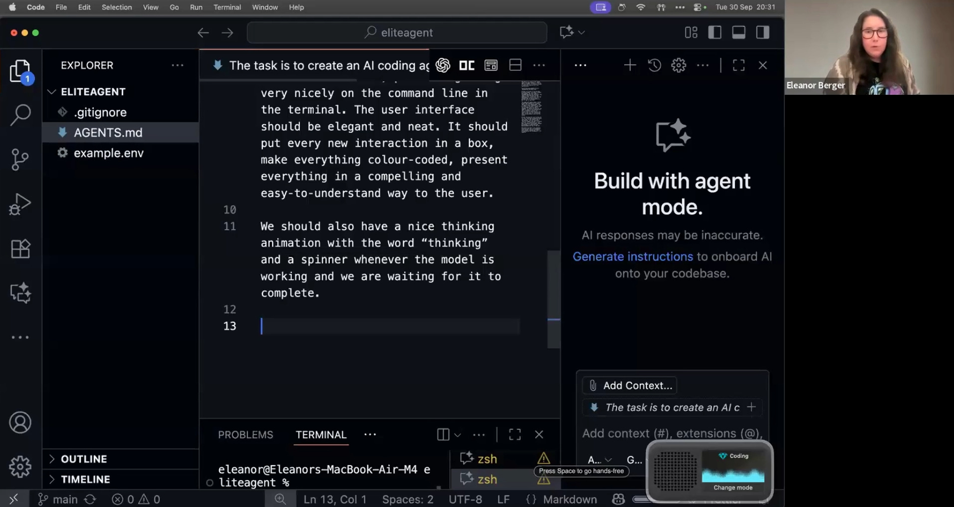 Eleanor Berger and Isaac Flath conducted a live coding session to build a functional AI coding agent in one hour. The session aimed to demonstrate that these agents are simple tools that connect language models to file systems. The actual intelligence comes from the models, not the agents themselves.