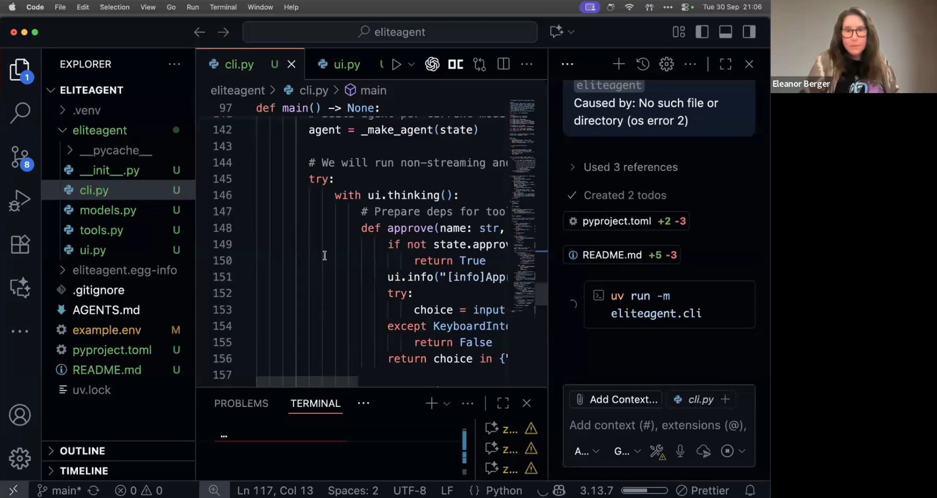 The error indicated that the agent had invented a method that didn’t exist in Pydantic AI, despite having documentation. This demonstrated the importance of accurate documentation and the iterative nature of AI-assisted development.