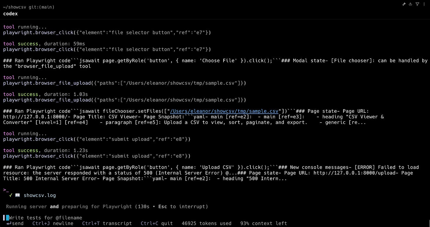 Codex used Playwright to launch the app locally