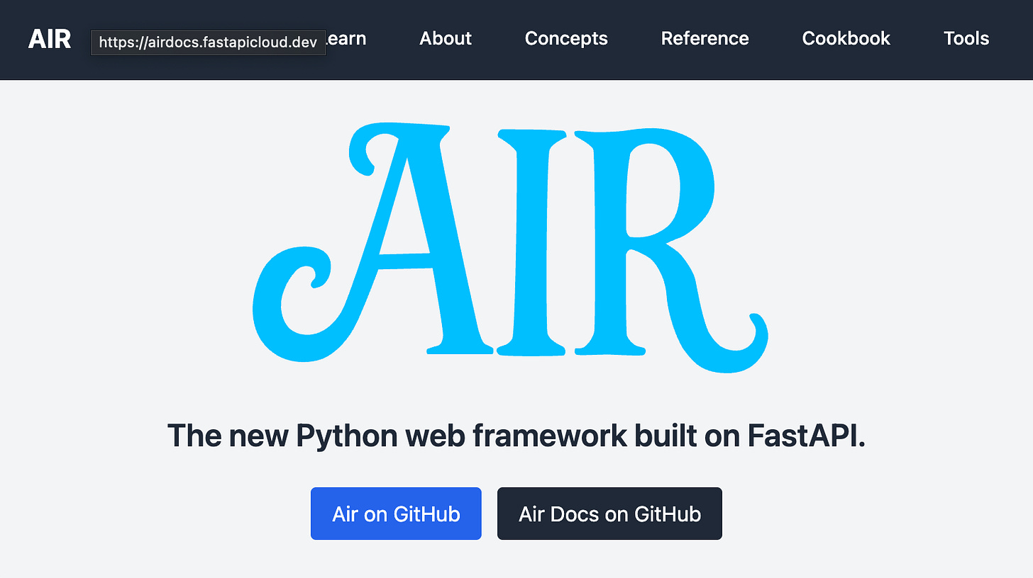 AIR is a new Python web framework created by Daniel and Audrey Roy Greenfeld, known for their contributions to the Django community and tools like Cookiecutter. Built on FastAPI, it emphasizes simplicity while using modern tools like HTMX for dynamic UI updates.