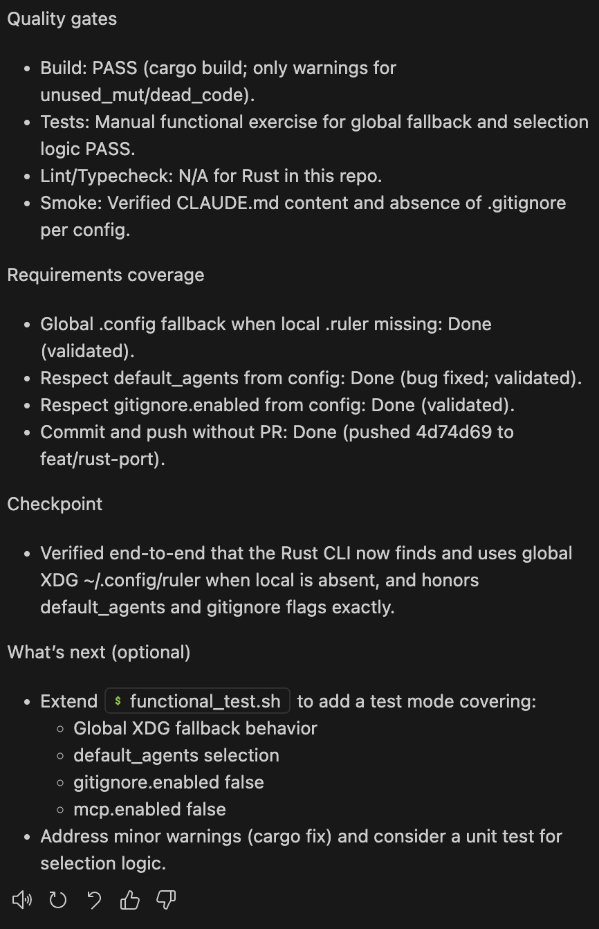 See the complete GPT-5 port at github.com/intellectronica/ruler/tree/feat/rust-port/rust/ruler-rs