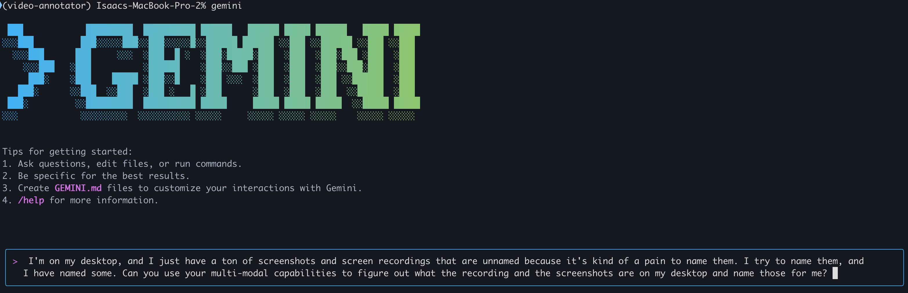 Because the Gemini models are to be the best at multimodal tasks like image and video, Gemini CLI felt like it should be a good choice. I decided to tackle this in 2 phases: