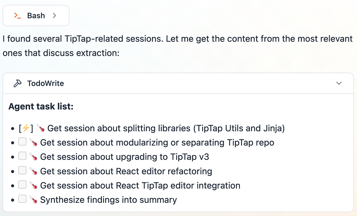 Search I find every mention of a library or bug. Here I’m searching for “tip-tap.”