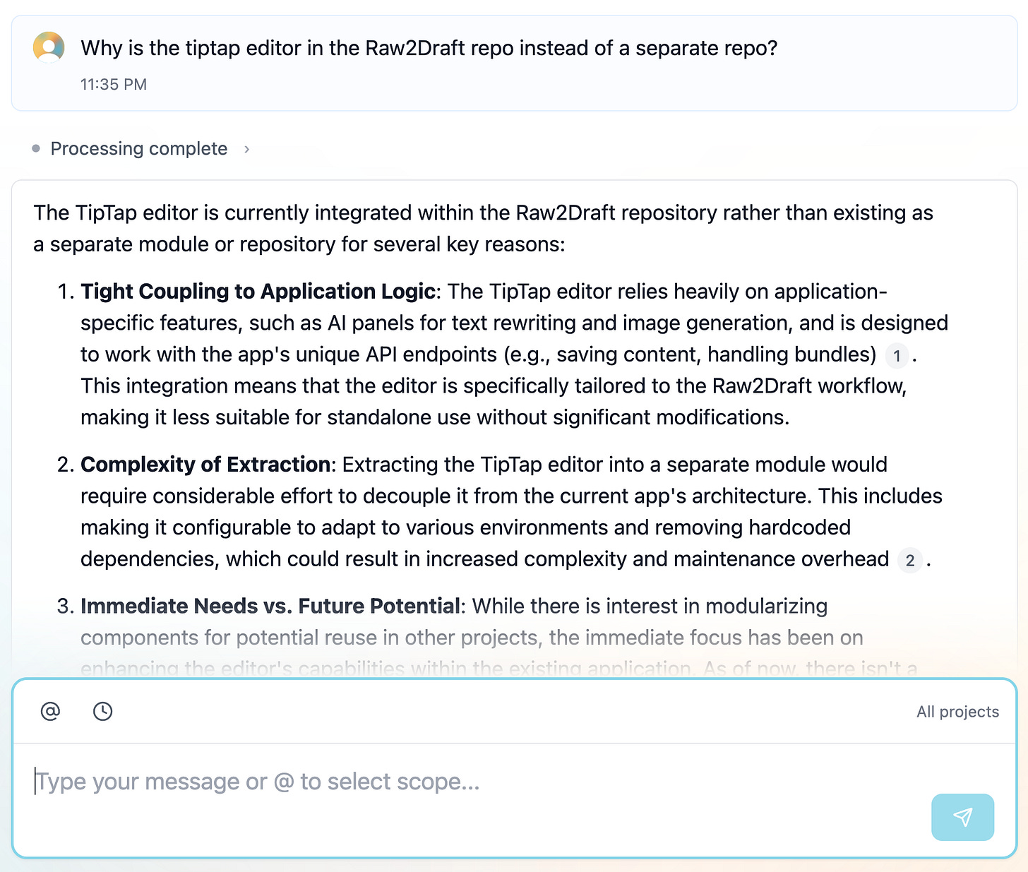 “Why is tip-tap editor in the repo instead of broken out into its own module?”