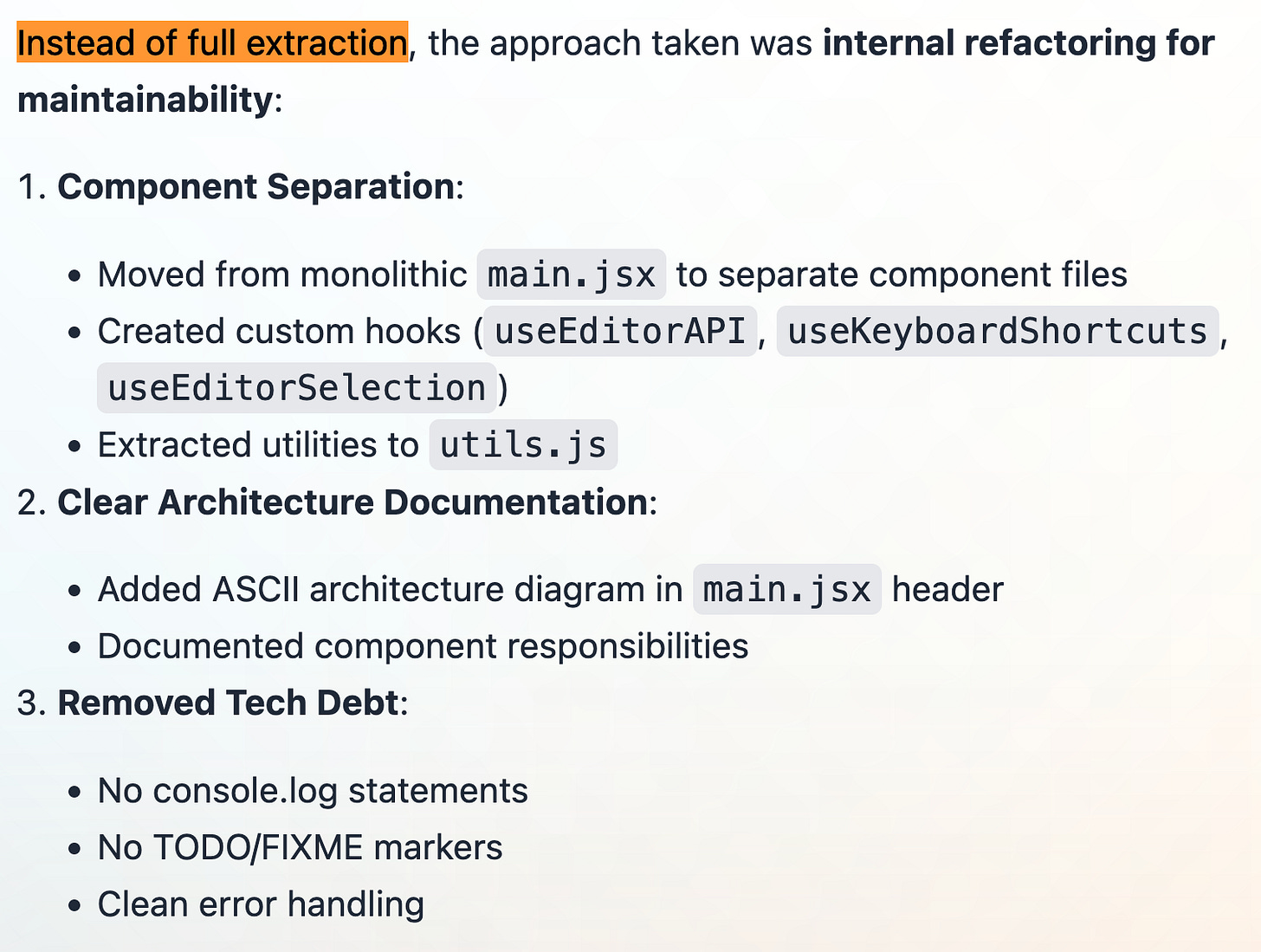 “Why is this complex React component inside the main repo? Why wasn’t it extracted into its own module?”