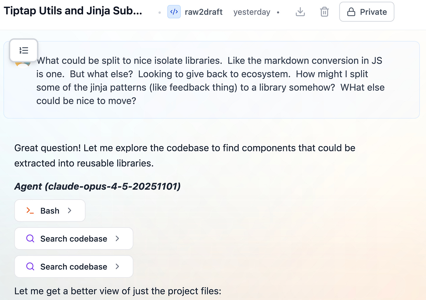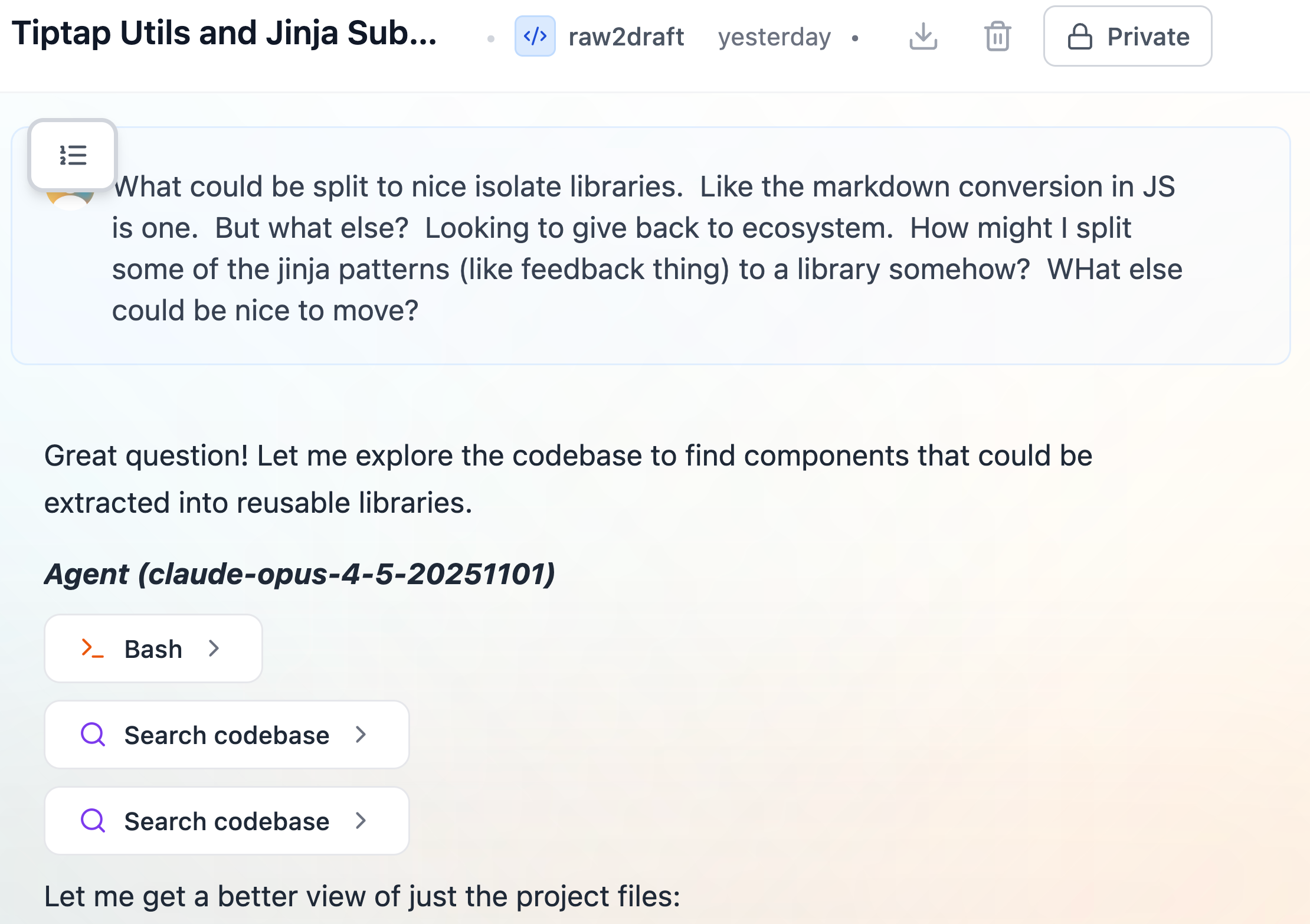 The agent flagged this component as a good candidate for extraction at the time, but the conversation moved on without a decision.