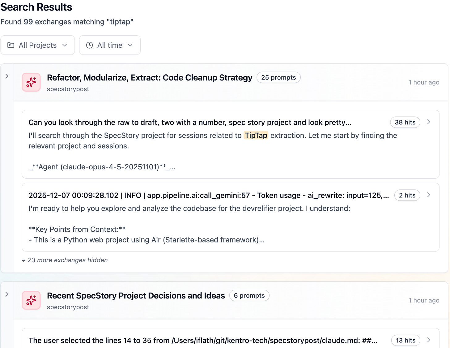 My agent can search SpecStory. So I asked: