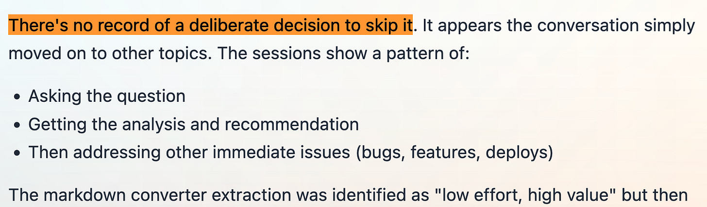 It searched my old sessions and found context I’d forgotten:
