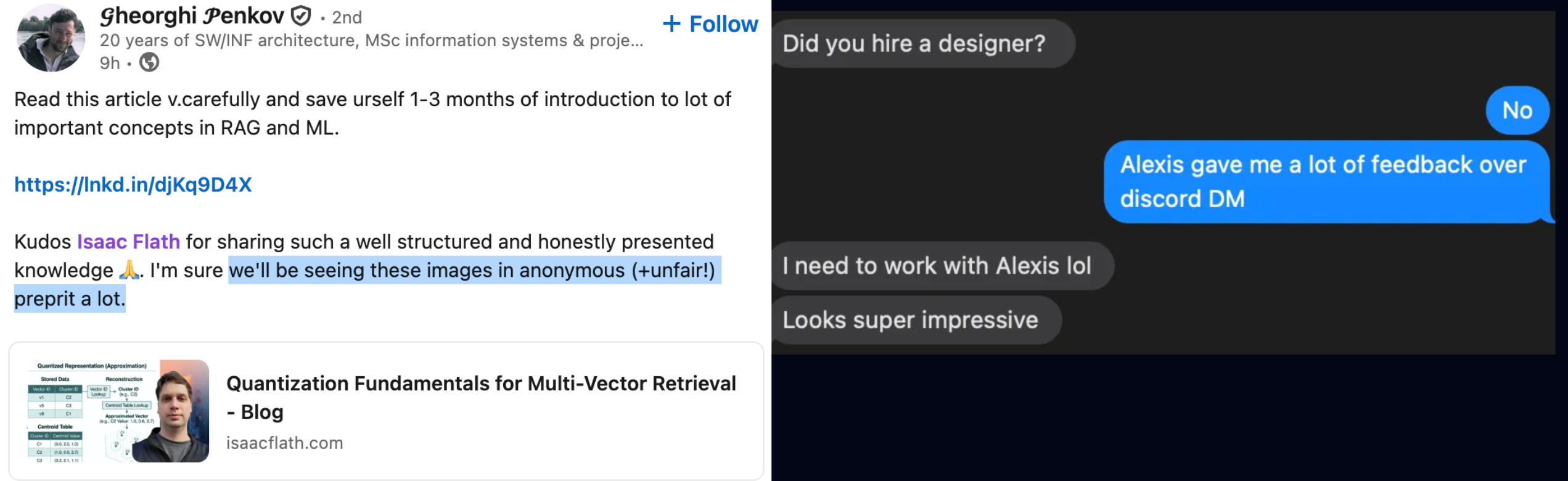 My blog post about quantization was very well received by the retrieval research community. One reader noted:
