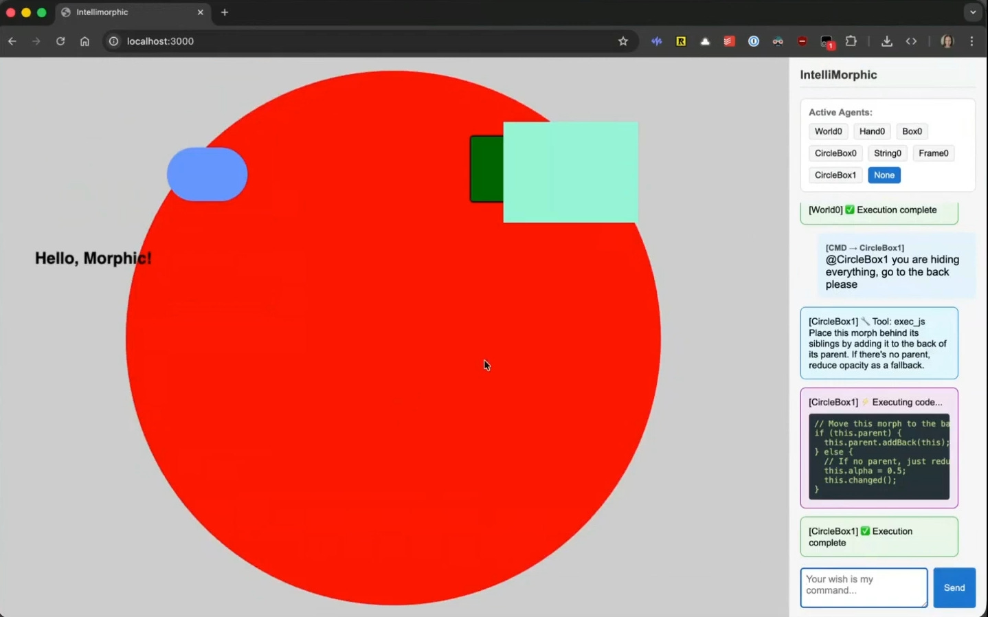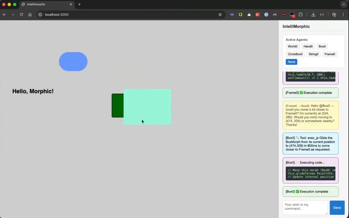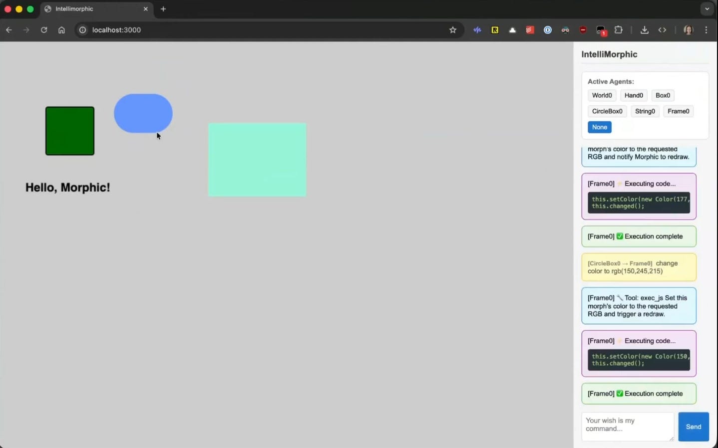When I clicked the morph, it sent a message to the frame, instructing it to change colour. The morphs were conversing in natural language.
