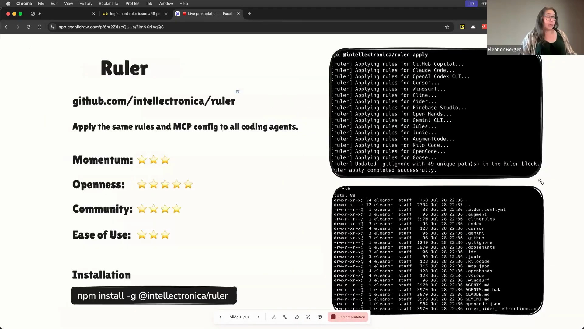 This is a bit of a shameless plug, as ruler is a tool I'm currently writing [00:26:24]. As I started working with all these different agents, I realized there was no good way to manage their configurations—the custom instructions, tool settings, etc.—especially for a team working on a single codebase [00:26:36].