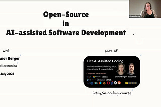 Eleanor gave a talk about a topic that's very close to our heart: open source in AI-assisted software development [00:01:42].